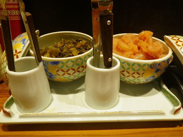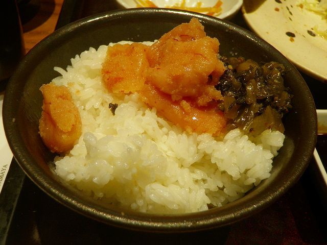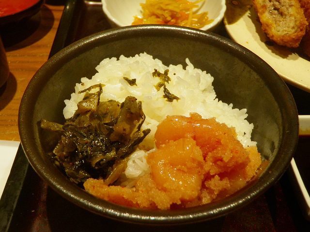 鉢一杯の「辛子高菜」と「めんたいこ」です・・・お替わり自由って言われても、一人では食べきれる量じゃぁ無いヤン