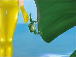 友達の新竿にくっついてるカエル!
