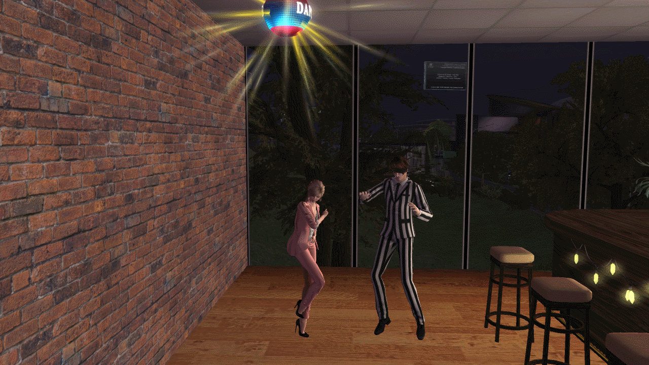 踊りはこんな具合です 上のミラーボールにタッチすると踊れます