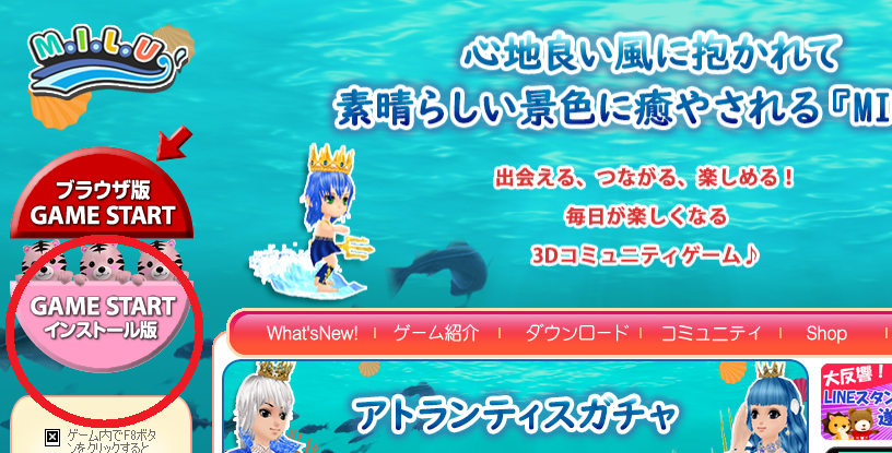 先に「ゲーム紹介」の右側にある「ダウンロード」を
