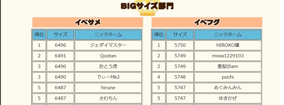 イベサメBIGサイズ部門の3位に入ってましたぁ♪(∩´∀`)∩