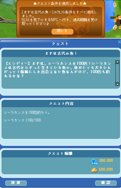 クエスト達成おめでとうございますヽ(^o^)丿
