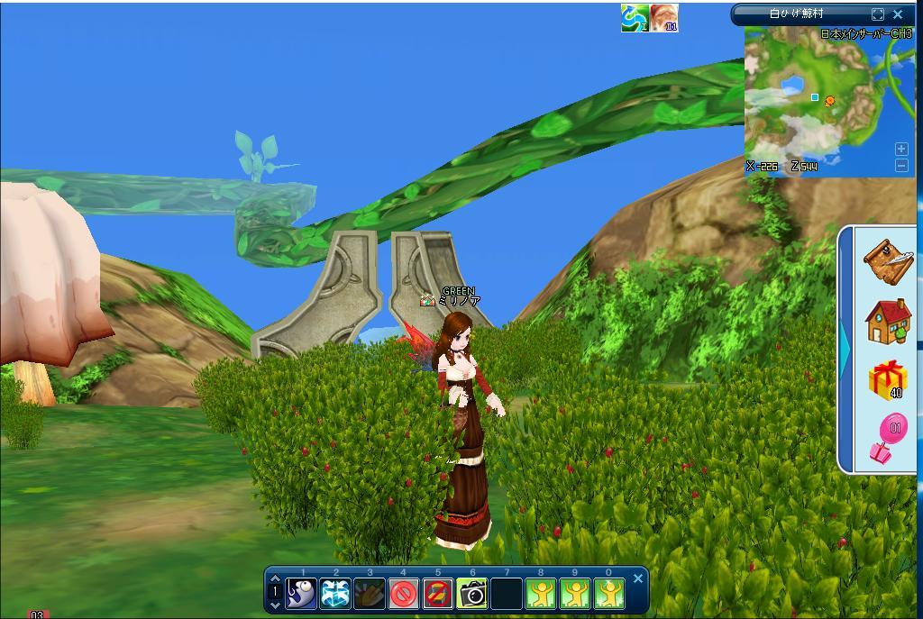 果実は、オレンジが4つと、緑が3つ。碧1つ。出ました。地上に降りて、イベント釣りを10回、餌の分、やって