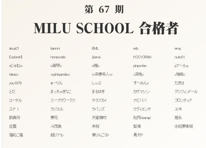 第67期のMILUスクールに無事合格していました!