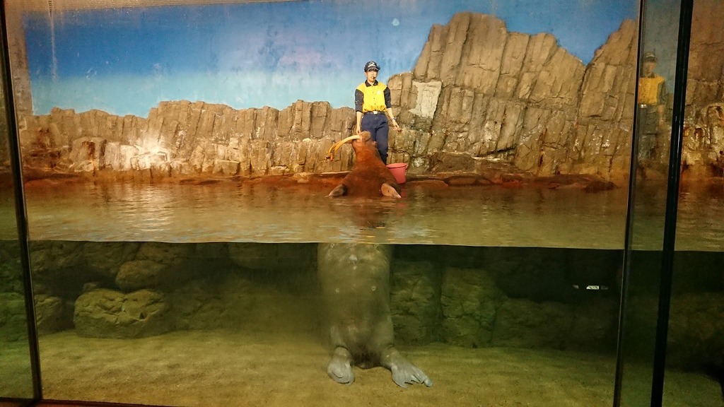 アトラクションが終わり移動すると・・・ セイウチのショーが始まるところでした!