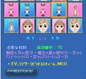ラブリーラビットコスの試用期間が切れちゃったので、調合に挑戦してみようかと思ったんですが、恋のレアスイートハート+恋のレアスイートシュガーなんて1個も持ってなかったです。