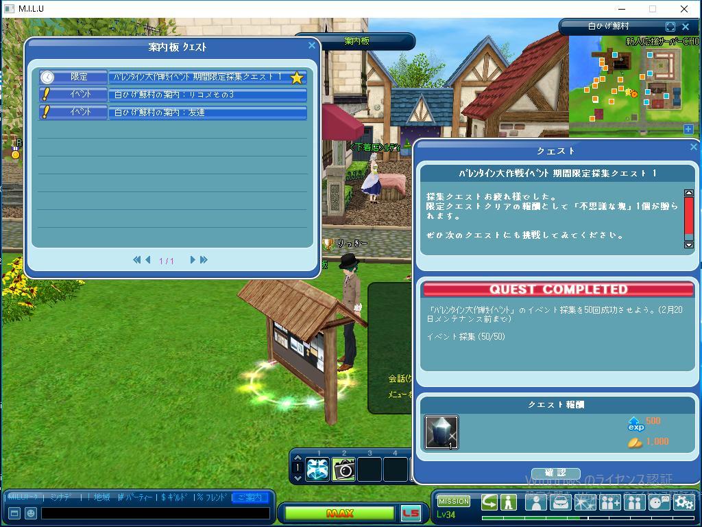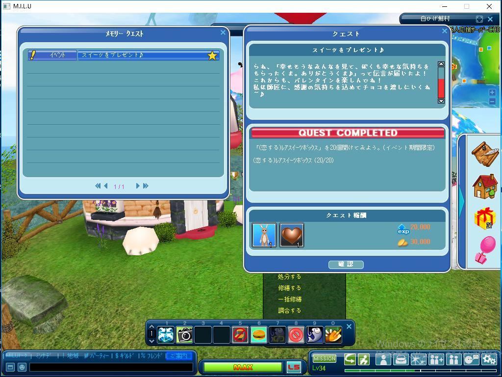 きのうはクエストの完了はひとつもなかったのですが、 本日はふたつのクエストをクリアできたことが 良かったですね。