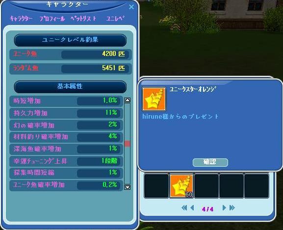 | Lv98アップ&ユニーク魚4200匹おめでとうございますヾ(*´∀`*)ノ |