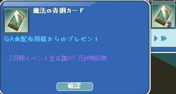 先週の掘りの時限クエは、既に終わってるお肉に見守られながら、完了できました♪ここずっと、お肉の方がクエはやくに終わってるので~教わってます❤ありがちゅっ(^・^)♪コレブからは、この2種のEV作った(*´ω`*) 赤い宝石椅子、光ってた☆リボンも光ってたね~~修繕可にはしなかったけどw9回の挑戦権で、ドリンク5種類できたと~""ハ( ̄▽ ̄*)パチパチ♪ お肉すごぉおおおおおおい!゚+(人・∀・*)+。アリガト♪ ジュエリーダンスⅡだけは作れたσ(・´ω`・)遅くまで、お付き合いありがとん~お肉❤そして、メンテ明け・・❤の雲ができてたよ♪っと、少しイベ釣りしてました(*´ω`*)30釣ったら、50釣って~ルディでお仕舞い☆案内板の釣りクエは・・・300まで、ありますがねwイベ服~色合いが好みっす❤イベ王総合結果、15P~19Pだと…カード3枚ご褒美もきた(*´ω`*)20Pから貰えるトラコスより嬉しいかも・・でっすw
