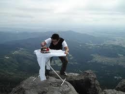 「極限状態の場所で平然とアイロン台を出し、