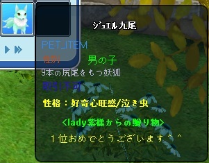 賞品のペットでジュエル九尾を頂きました♪v( ̄Д ̄)v イエイ