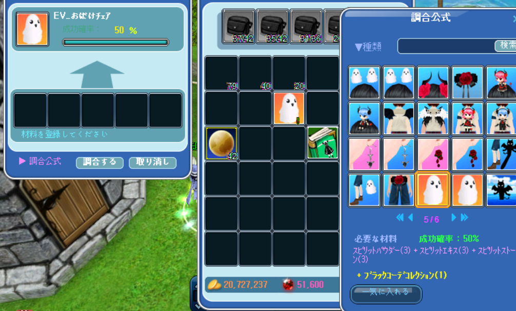 調合でおばけ椅子ができました。浮かんだり沈んだりして椅子が浮いています。