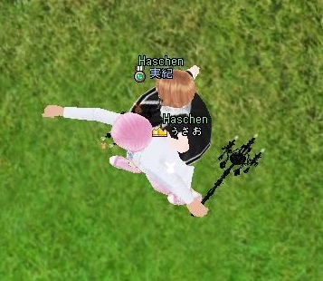 でも、隣に居るみーちゃんには右手に持ってる様に見える~