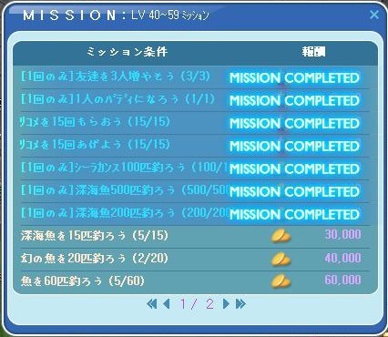 | ミルウェイ1発成功にシーラカンス100匹達成おめでとうございます \(^ー^〃)メンテ明けもヨロシクお願いします(*´∀`) |