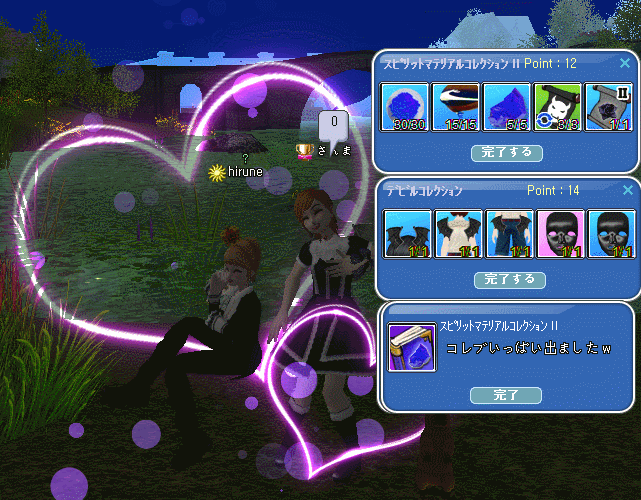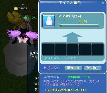 時限クエは、最後まで完了できました( ˇ ⊖ˇ)フンフーン♪てんてんさんやお肉にカンパされて~ドリンク挑戦Σd(ゝ∀・)アリガトォ♪6回… 1個できた(*´ω`*)お肉に進呈しました(´∀`*)ウフフお肉も時限クエ完了して、足りなかった羽も頂いてり~コレブ2種完成気に入ってるし、100レベも考えたけど…遊び用に(。-∀-)ィヒ♪今の色変えできるワンピ90レベあるし、オーバーチュンすればいいしね♪貴重なカード34個も使っちゃったけど~~~満足w挑戦権が2個持ってて、お肉も1個でて…託されて3回チャレンジしたけど、消えていった~おばけちゃんwEVミルウエイは、一発で調合できたよ~(*´ω`*)きっと、白ひげ鯨村は・・オバケでいっぱいだろうな・・・w