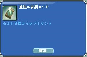 魔法の青銅カードを 頂きました。