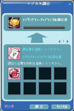 調合書選択後、右上の数字のとこの