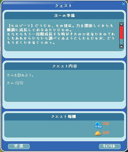 カムを訪ねて、続きのクエストを受け取る
