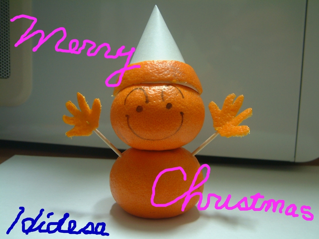 さよのリクエストで、みかんで雪ダルマ作りました
