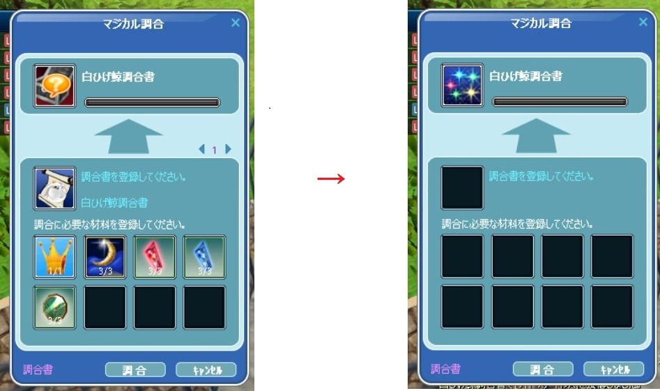 くじらですよ。 調合書自体も滅多に出ないレアなんですよ。
