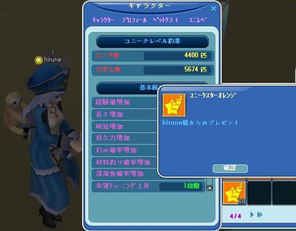 ユニーク魚が4400匹で、オレンジな餌が60個ごち♪