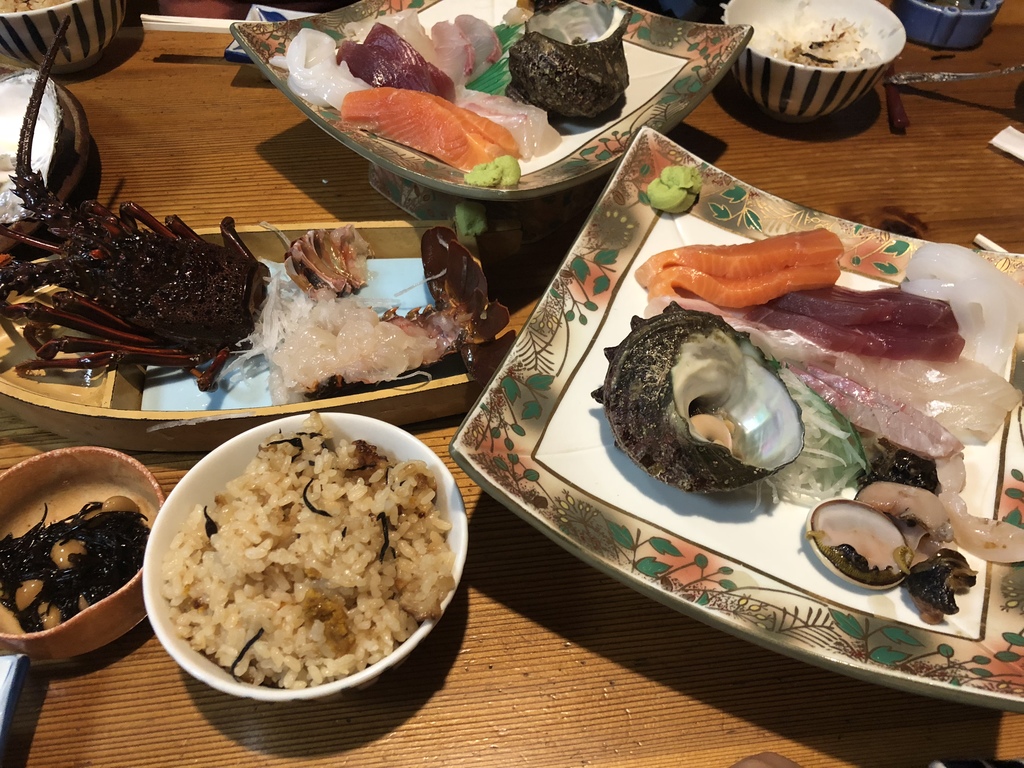 んで夜は伊勢海老!!海鮮!!