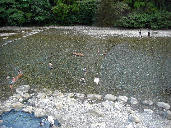 いかだで遊んだりしています
