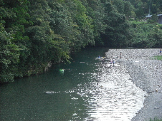 上の写真は旅館の裏に流れる川で、左下に露天風呂があります