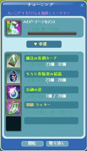 オーバーチューン残念だったですねー><失敗こわいです((((;゚Д゚))))ガクガクブルブル