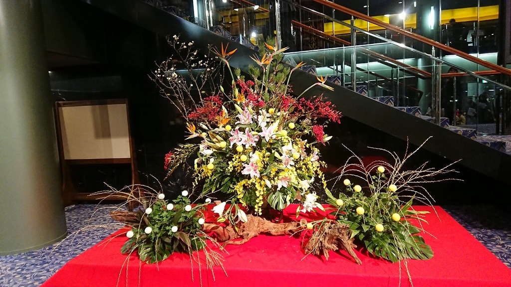 ホールの中はクリスマスツリーから生け花に!