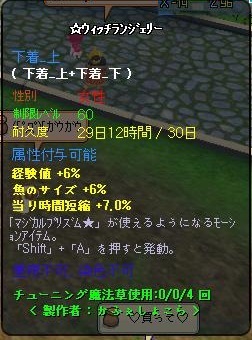 クマコス他7点、60竿の6-6、装備品のチューンアップ指輪のチューンシフト。