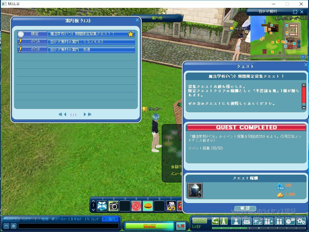 こちらは最初に完了したイベントのクエストの様子です。