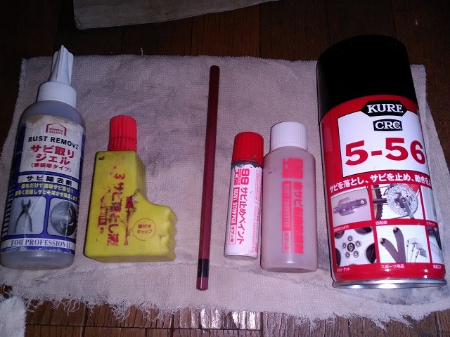 左から錆び取りジェル、これゎホームセンターコメリでしか売ってない物で結構頑固な錆も落ちます。