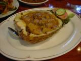 半分に切ったパイナップルをくり抜いて、中にカレーが入っているんですが、パイナップルの実が沢山入ってます。