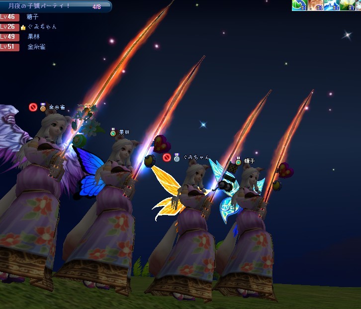月夜のもとで開催される子狐パーティー。