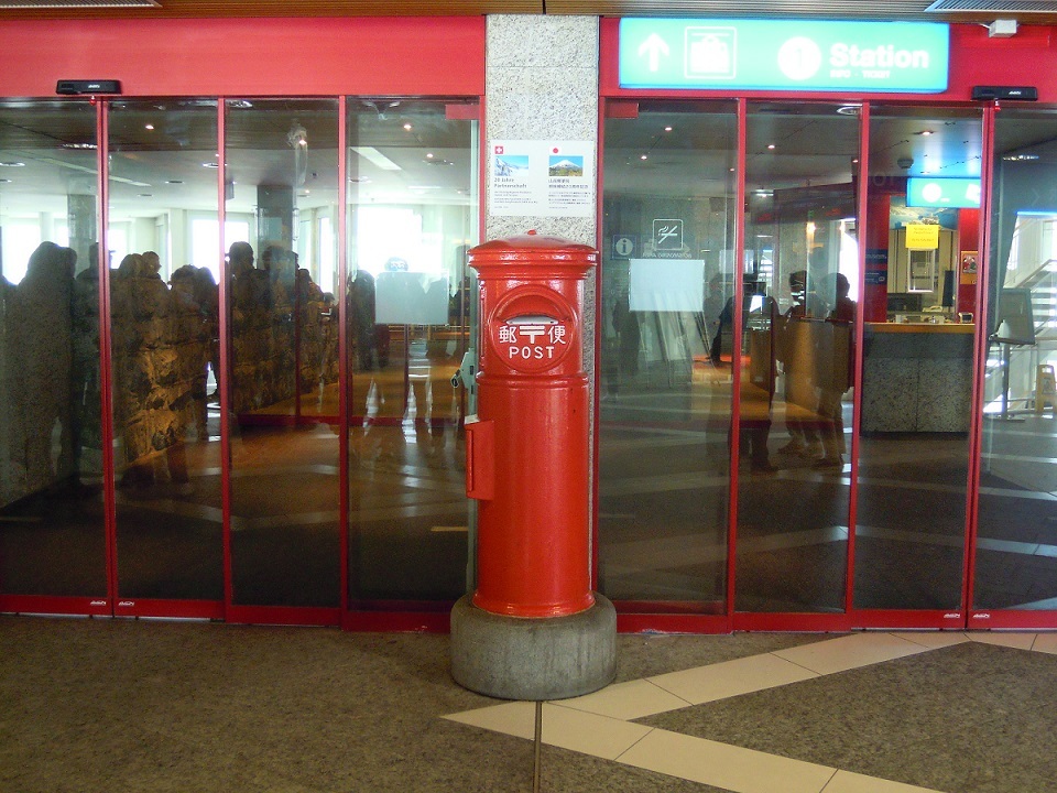 駅に着いて、まず目に入るのが日本の赤い丸ポスト。