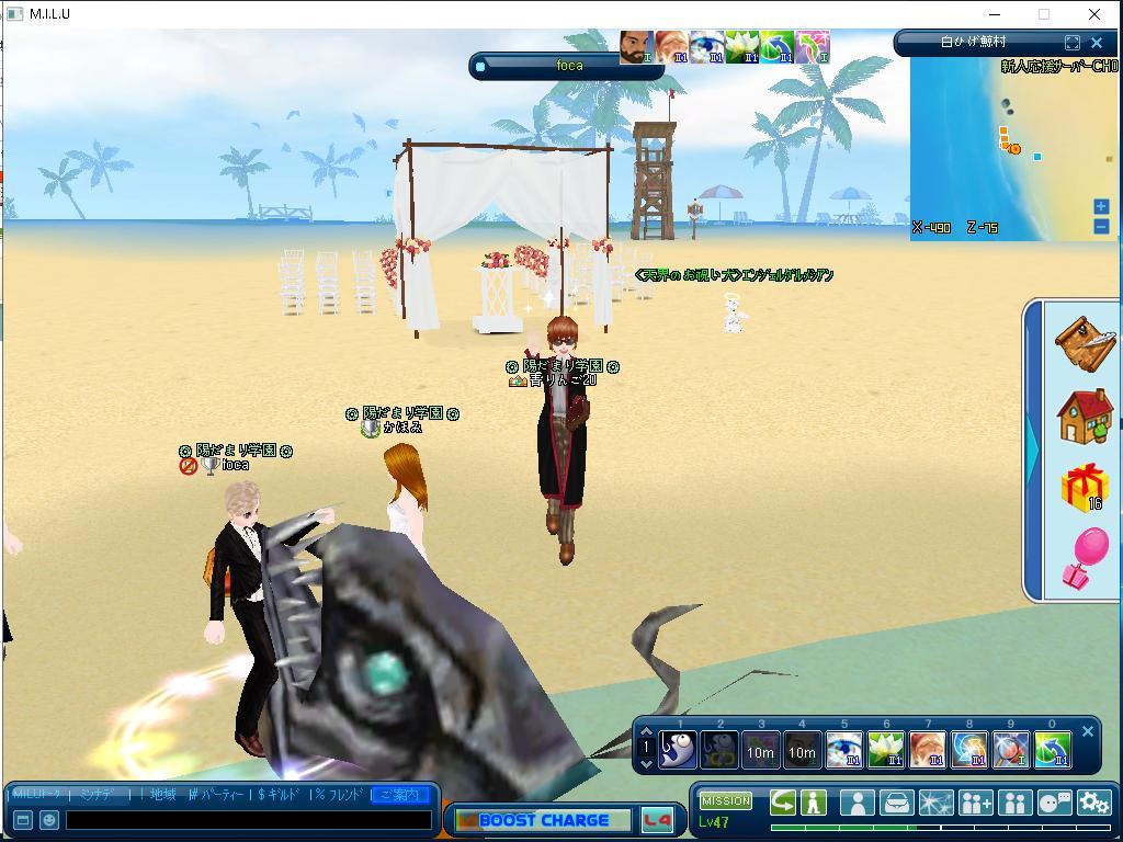 釣ってる途中でギルメンで元バディのfocaさんがレベルが上がりそうだったのでお祝いに行きました(/・ω・)/