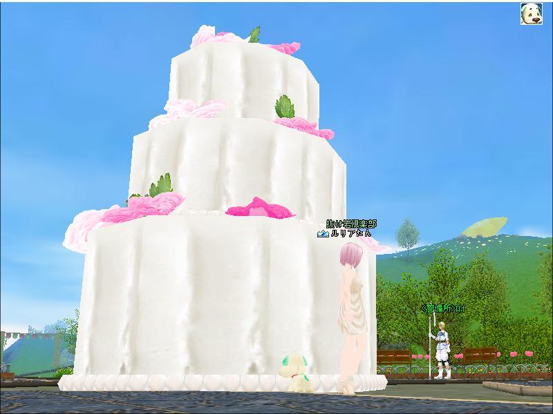 広場にあるでっかいケーキ、甘くておいしそう……。
