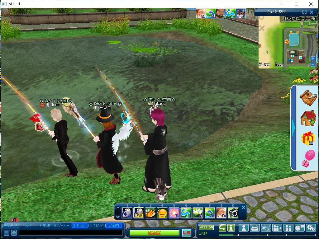 陽だまり学園のギルドのみんなと一列にならんで釣り~♪