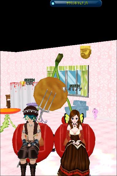 うちの自慢のサクランボ椅子、ミドリンさんと座ってますね^^