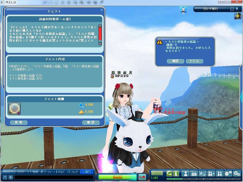 その中の青の1つであるクエストの高級素材というクエをしていました。