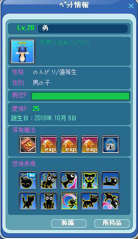 ペットの勇が、やっとLv20にアップしました^^これで4個目のスキルが付けられます^^
