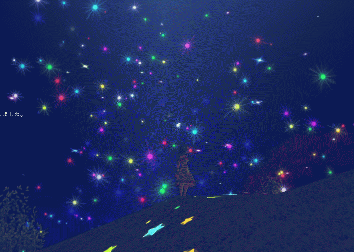 | おお・・・。 幻想的ですね・・・ω・ 光なのか星なのか、まさかホタルなのか、わからないのが良いです^^ |