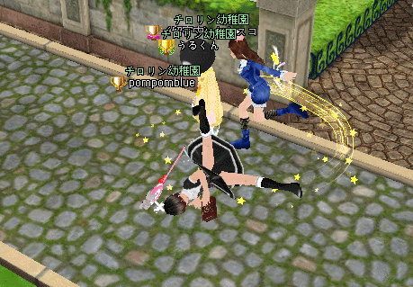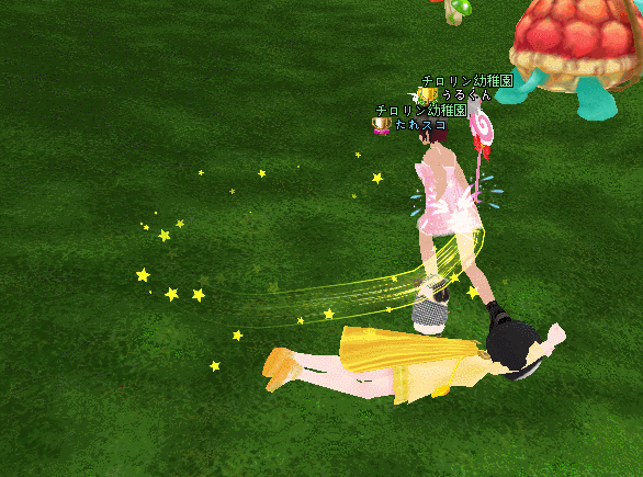ポムにパンツ見られまいと必死に回るうるくん。。