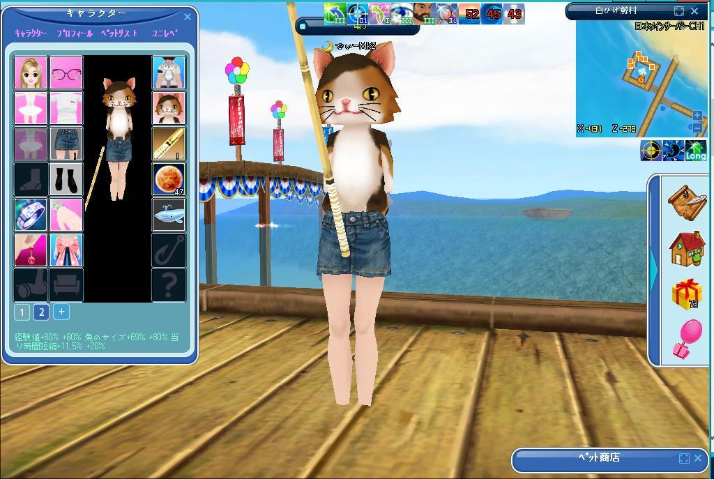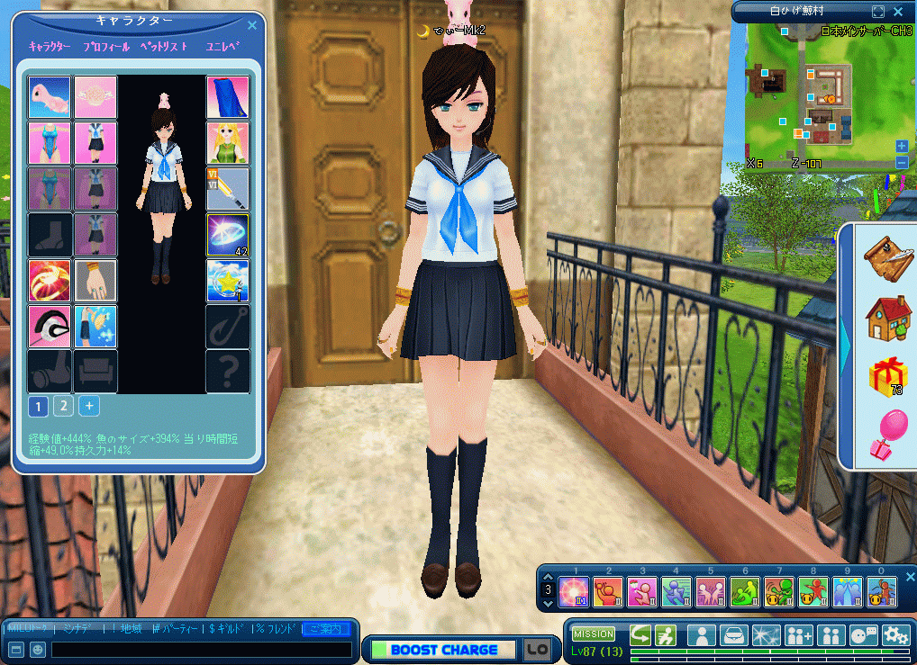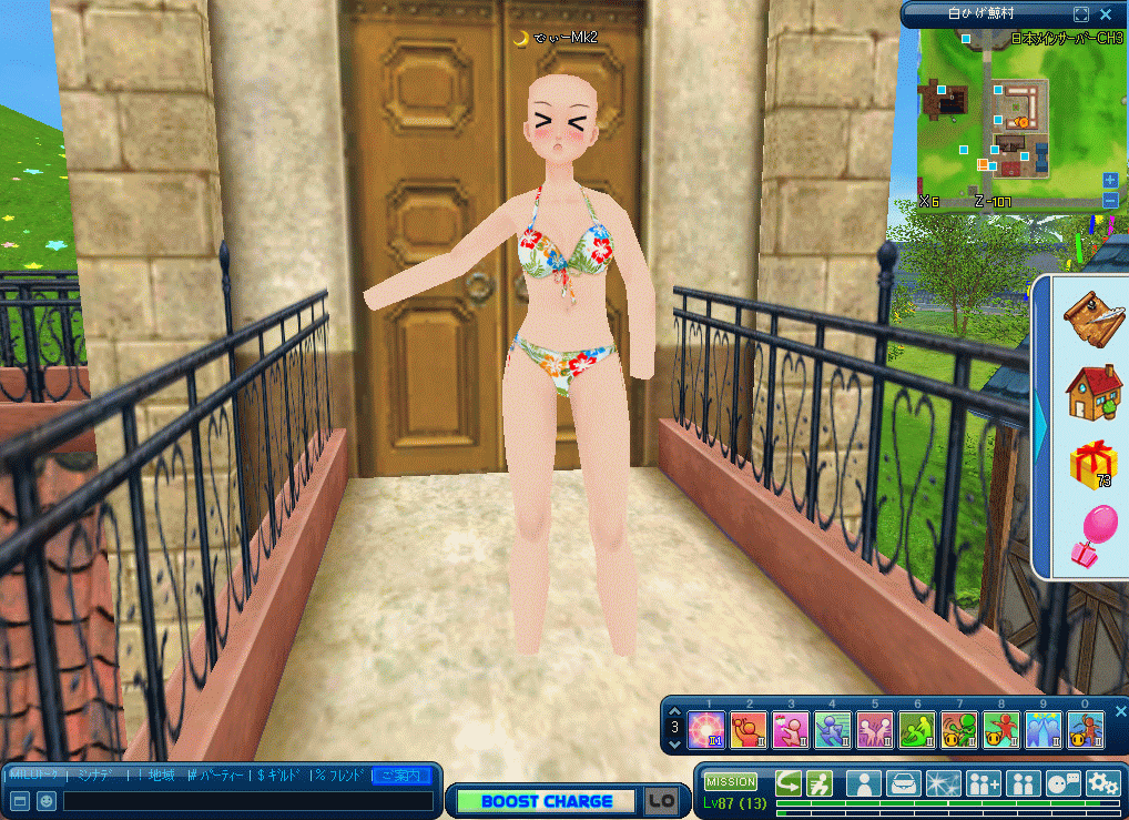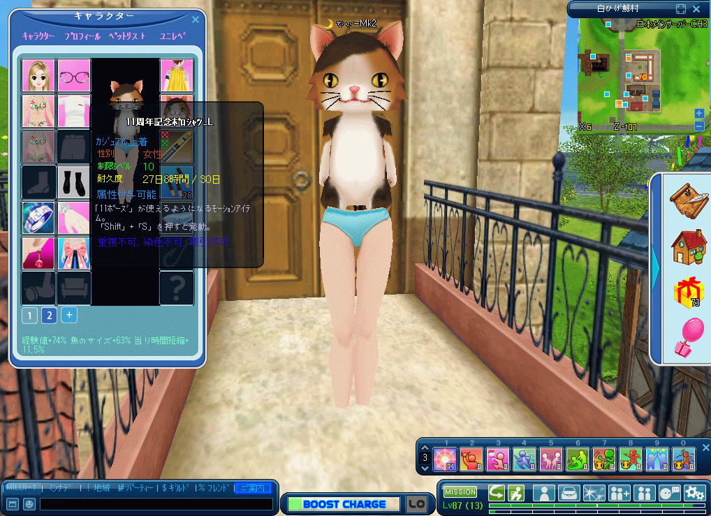 再びINしたらキャラ表示2に切り替えるとコスで表示されます。