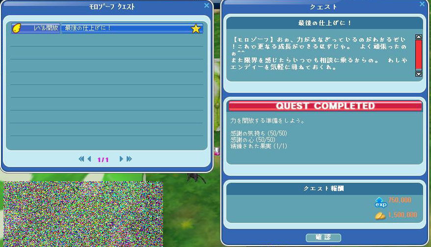 通常の期間であれば、経験値が100%になる前に完了するクエストだと思いますが、