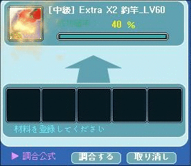 | マジっすかー(;^ω^) これはキツイっスねー^^: 自分はメンテギリギリにW竿作ったけど4回失敗w 40%ってなに??( ゚Д゚) |