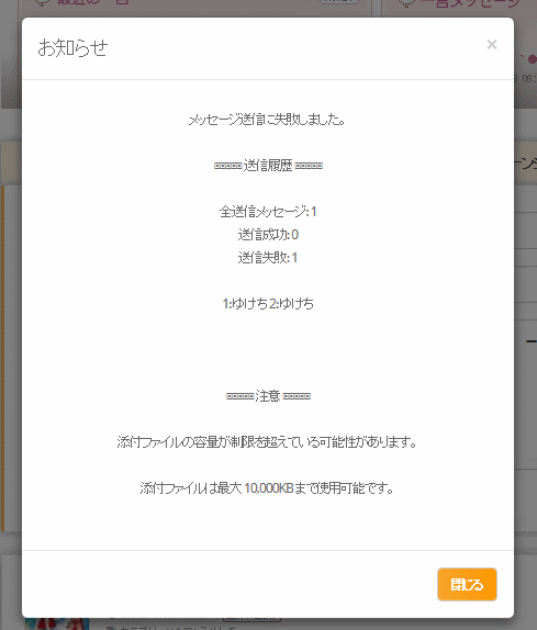 けにょさんの問題じゃなくて受信側(ゆけちさん)が容量いっぱいなのかもしれませんね。