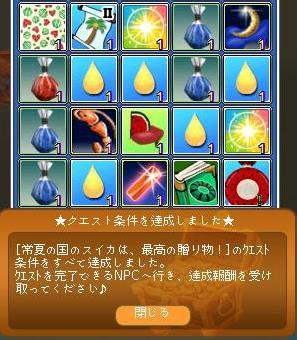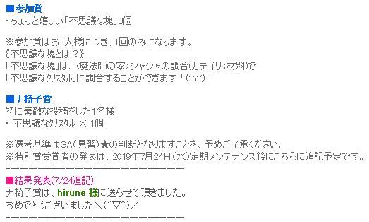 メンテ明けに、プレボに届いた品々SS投稿したのが、選ばれたようですヾ(〃^∇^)ノわぁい♪まだ設置してないので、そのうちSS撮ります(`・ω・´)ゞw みるトモ3人増やせてた!フレさん3人も増えた記憶がない旦那様も頂いてましたwwアタイは掘り中にエモって、アイテム仕舞ってないので連続エモ風とっても綺麗な花火なのに、単発エモでしたね20箱あけて、クエは完了(・`ω・)ゞデシッ!!コレブに、その中身が2個出たけど…がっかりする中身だねw時限クエもあるだろうし、まだまだ様子見ですね!おやすみになられる前の旦那様が、爺を殴って~廃装備を・・・手渡されたwこのヅラのエモが、炎の剣の舞♪ヤバイです!修繕可を考える方向だと、仰られて寝んねされました