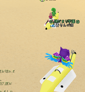 ギルメンのバナナボートを追いかけるあくま(*'▽')